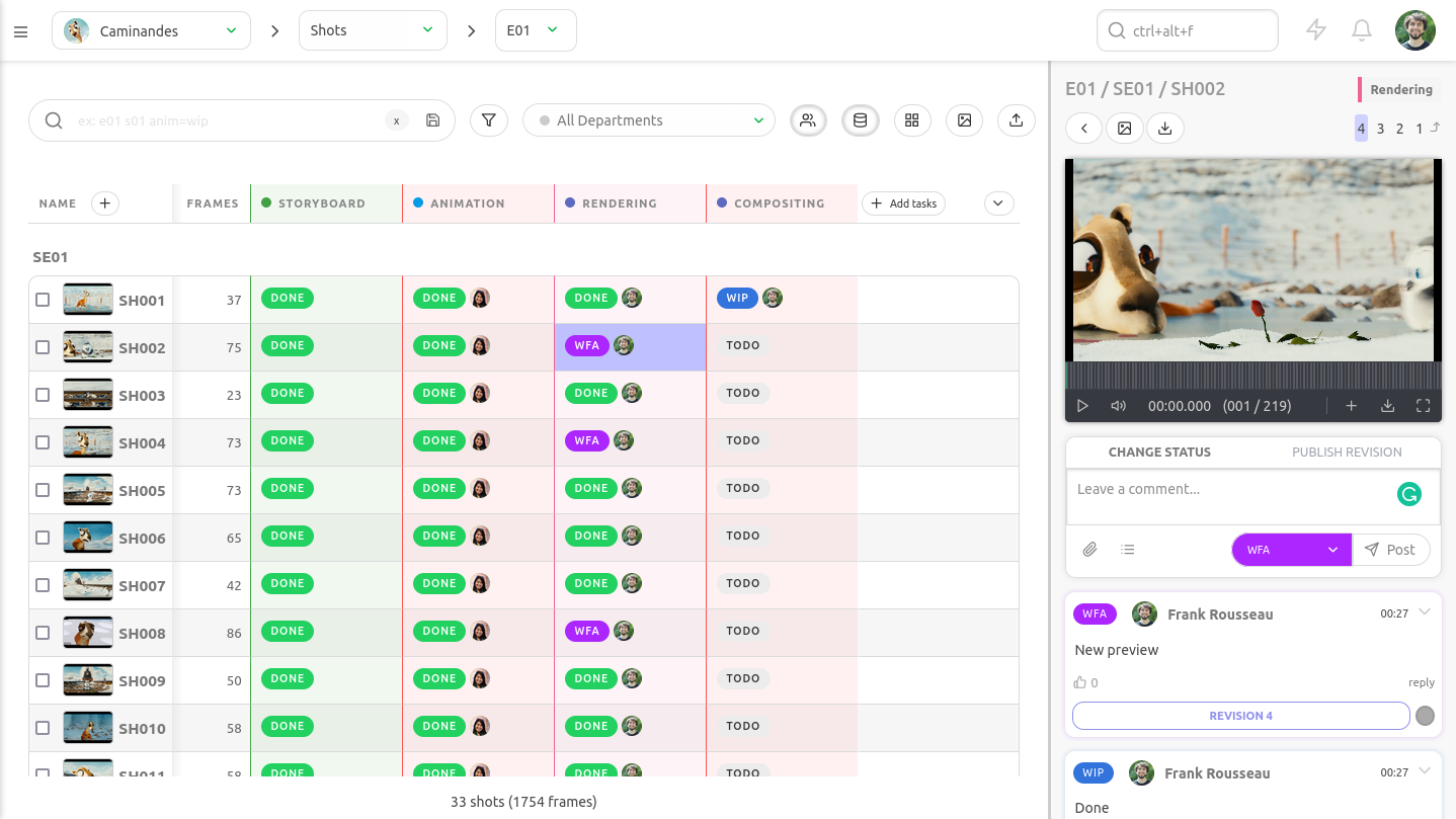 Streamlined and intuitive software is quicker to use and easier to get started with. With Kitsu, you can start your projects without the need for a consultant or intensive training.